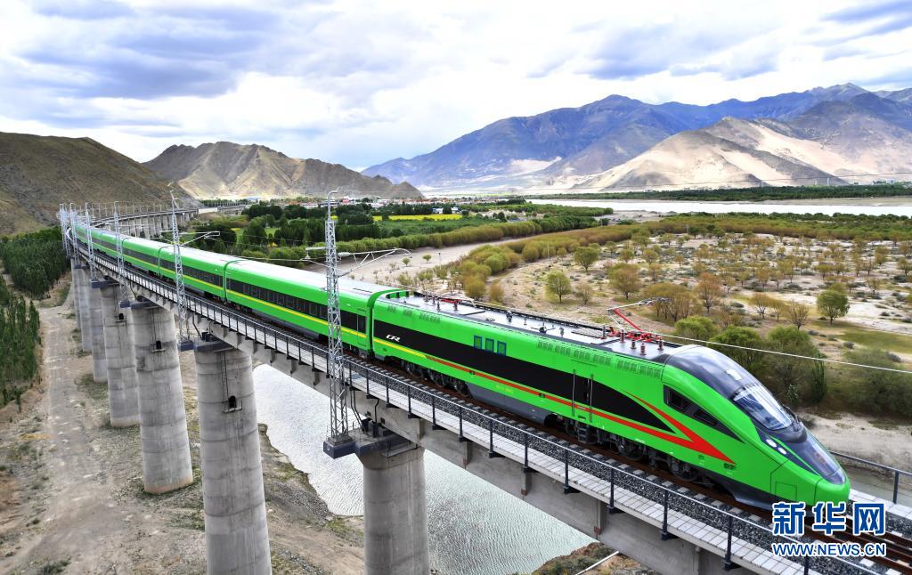 這是6月16日拍攝的行駛在拉林鐵路上的復(fù)興號(hào)列車。