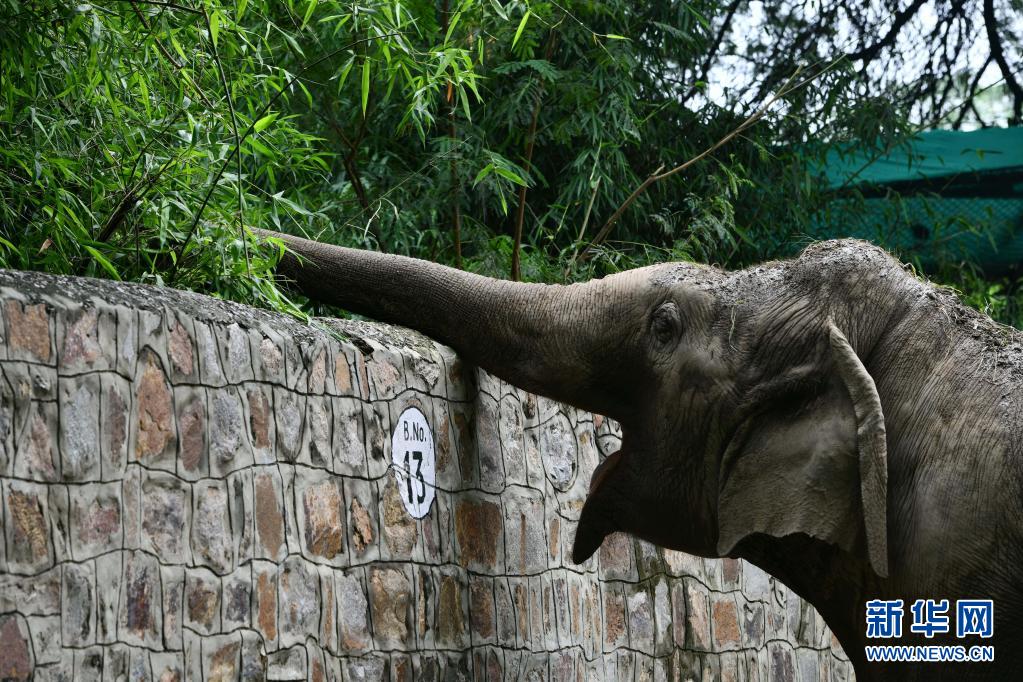 這是8月1日在印度新德里動(dòng)物園拍攝的大象。