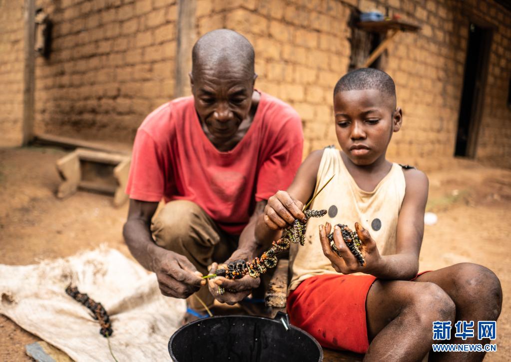 對(duì)于生活在糧食匱乏狀況下的居民,蟲子不僅意味著食物可以果腹,也是財(cái)富的來源。在雨季,來自首都班吉的經(jīng)銷商每天都騎著摩托車來到當(dāng)?shù)兀召?gòu)當(dāng)?shù)鼐用褡淼拿x,然后賣到首都消費(fèi)者手里。