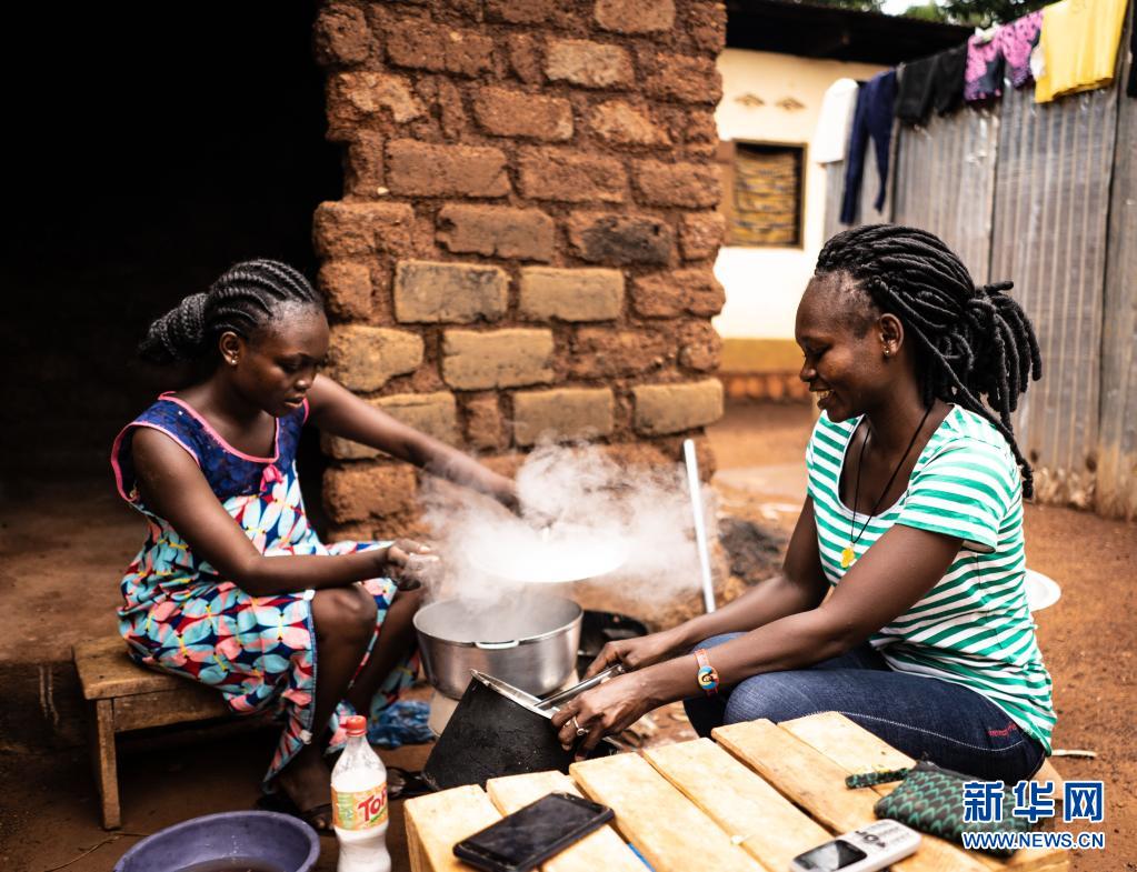 7月20日,當(dāng)?shù)厝嗽谥蟹枪埠蛧?guó)首都班吉郊區(qū)烹飪蟲子。