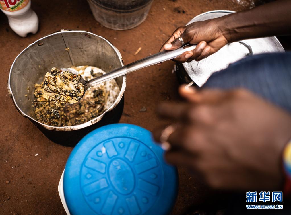 對(duì)于生活在糧食匱乏狀況下的居民,蟲子不僅意味著食物可以果腹,也是財(cái)富的來源。在雨季,來自首都班吉的經(jīng)銷商每天都騎著摩托車來到當(dāng)?shù)?,收?gòu)當(dāng)?shù)鼐用褡淼拿x,然后賣到首都消費(fèi)者手里。