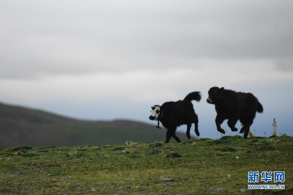 這是8月3日在瑪沁縣當洛鄉(xiāng)貢龍村的夏季草場上拍攝的牦牛犢。