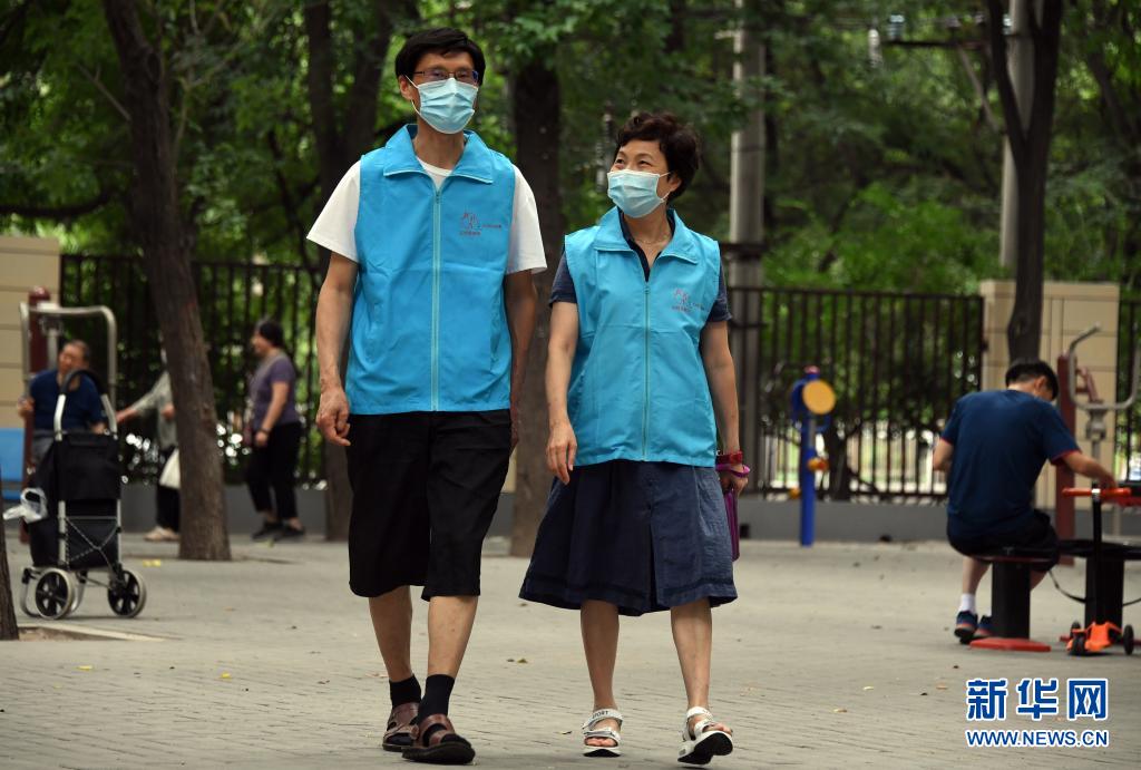 8月14日,在北京市海淀區(qū)薊門里社區(qū),馮向東與妻子董星梅準(zhǔn)備去做志愿服務(wù)。