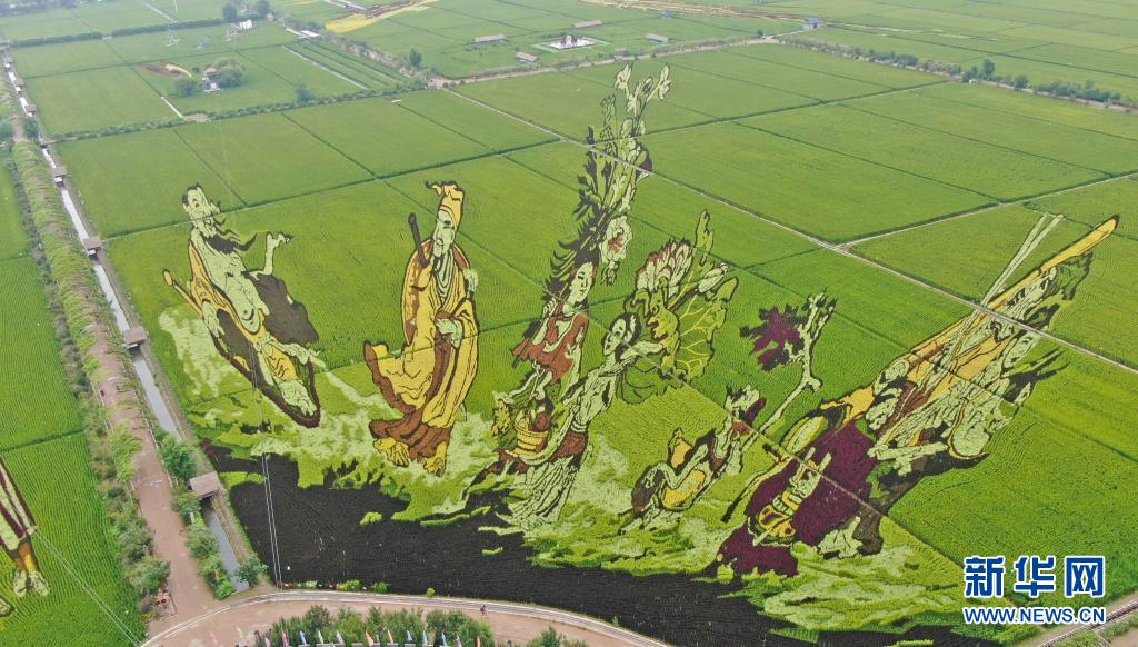 這是8月16日拍攝的稻田畫《八仙過海》(無人機(jī)照片)。