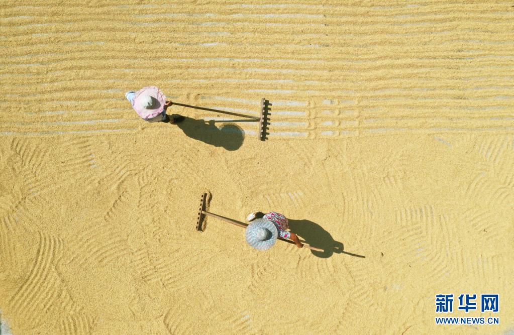 立秋過后,貴州省赤水市農(nóng)民種植的水稻、高粱、玉米、辣椒等農(nóng)作物迎來收獲季,當(dāng)?shù)卮迕駬屪デ绾锰鞖鈱⑹斋@的農(nóng)作物鋪放在房前屋后的壩子中進行晾曬,構(gòu)成一幅幅美麗的“曬秋圖”。