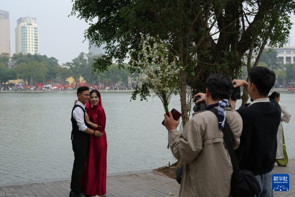 春节将至,越南首都河内年味十足。市民与游客逛古城、购年货,前往文庙、还剑湖等地拍照打卡。许多人还来到文庙的新春书法节现场,求取汉字书法作品,迎接即将到来的马年新春。