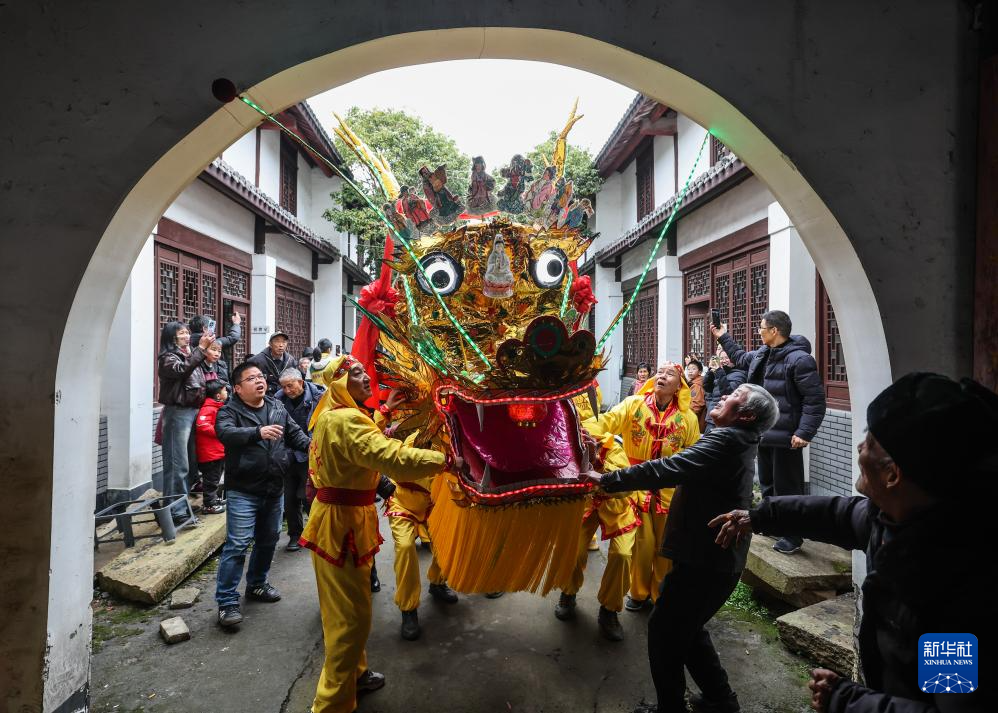 2月10日,诸暨市赵家镇赵家社区村民抬着板凳龙开启巡游。