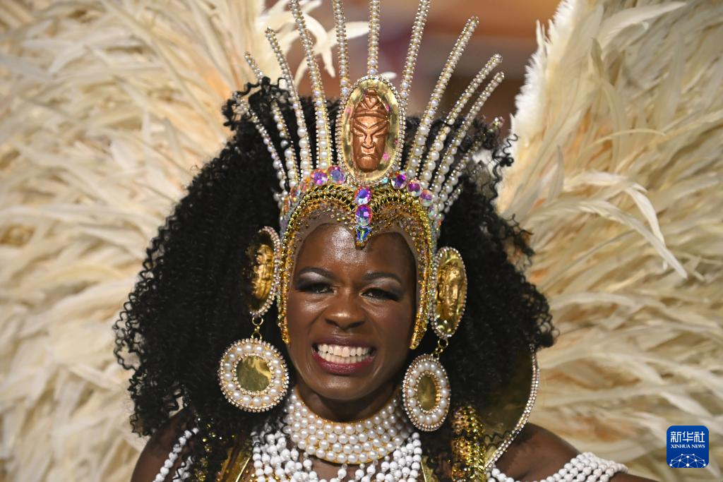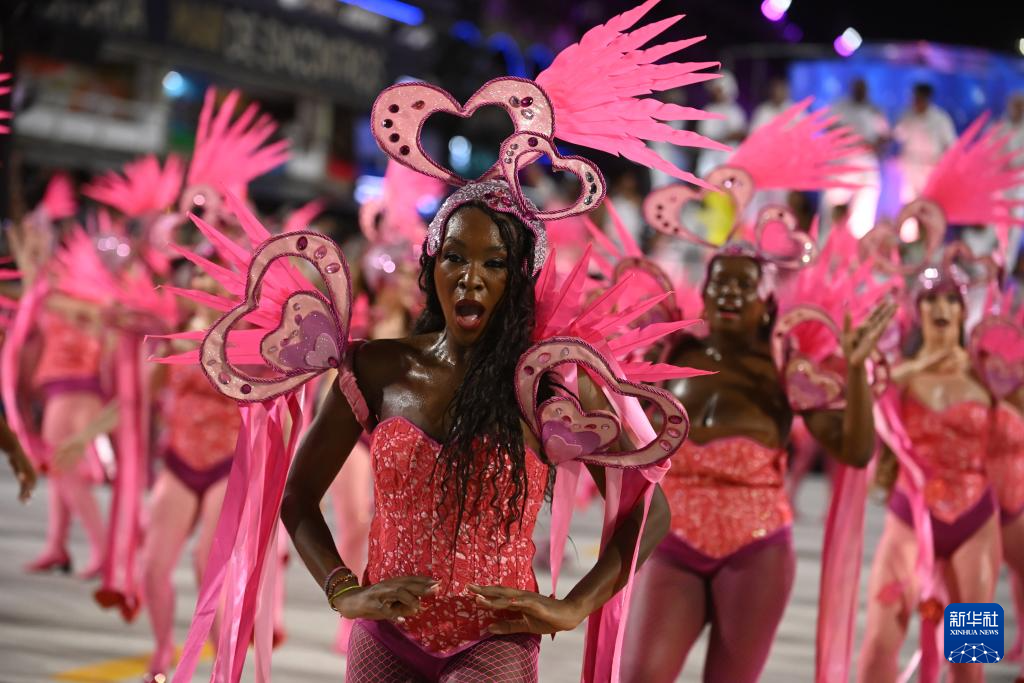 2月13日,桑巴舞者在巴西里约热内卢举行的2026年狂欢节游行中表演。