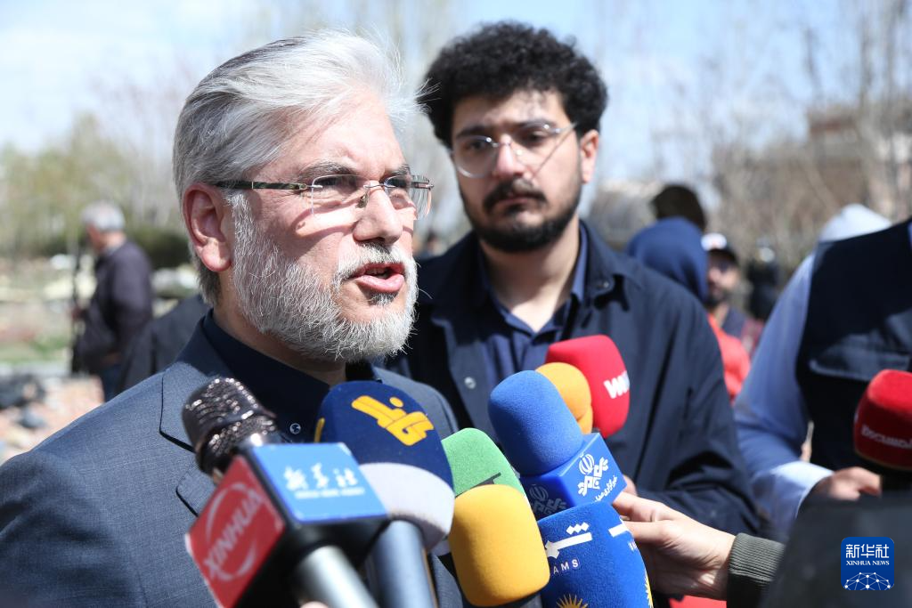 4月4日,在位于伊朗首都德黑兰的沙希德·贝赫什提大学,伊朗科学部长侯赛因·西迈·萨拉夫接受媒体采访。
