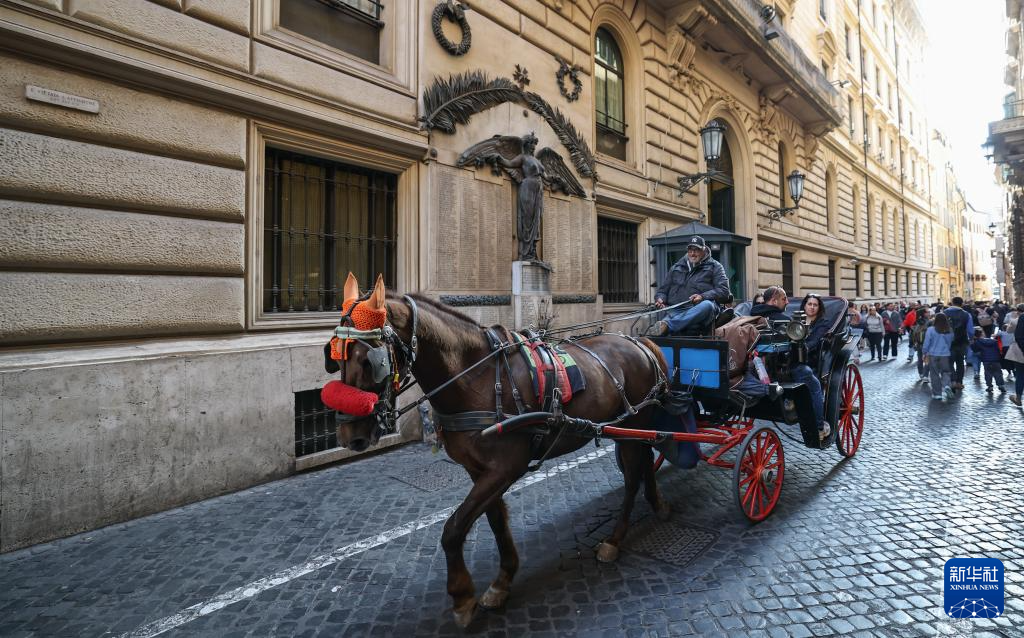 4月3日,游客在意大利首都罗马体验马车巡游。