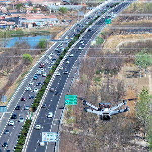4月6日,天津市公安局交通管理总队高速公路支队采用无人机在津蓟高速上空进行视频定时巡查(无人机照片)。