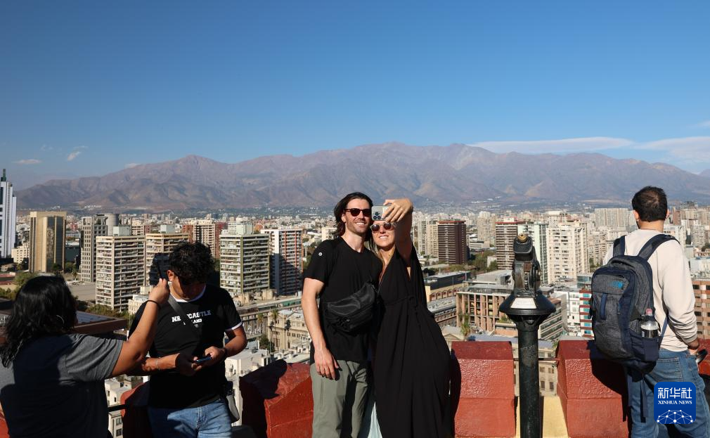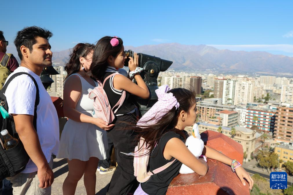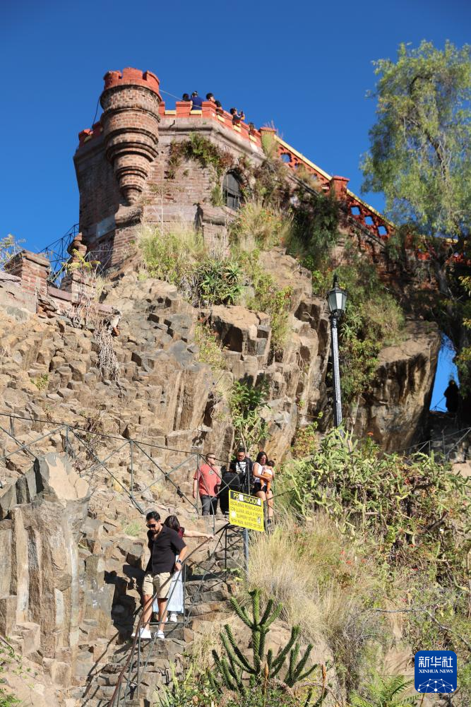 4月5日,人们在智利圣地亚哥的圣卢西亚山公园游览。