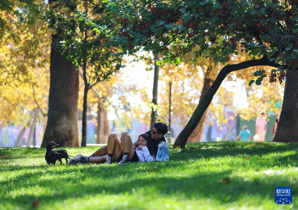 4月5日,人们在智利圣地亚哥的一处公园休息。
