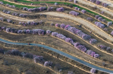 清明小长假期间,位于宁夏固原市彭阳县黄土高原梯田间的数十万亩桃花、杏花进入盛花期。