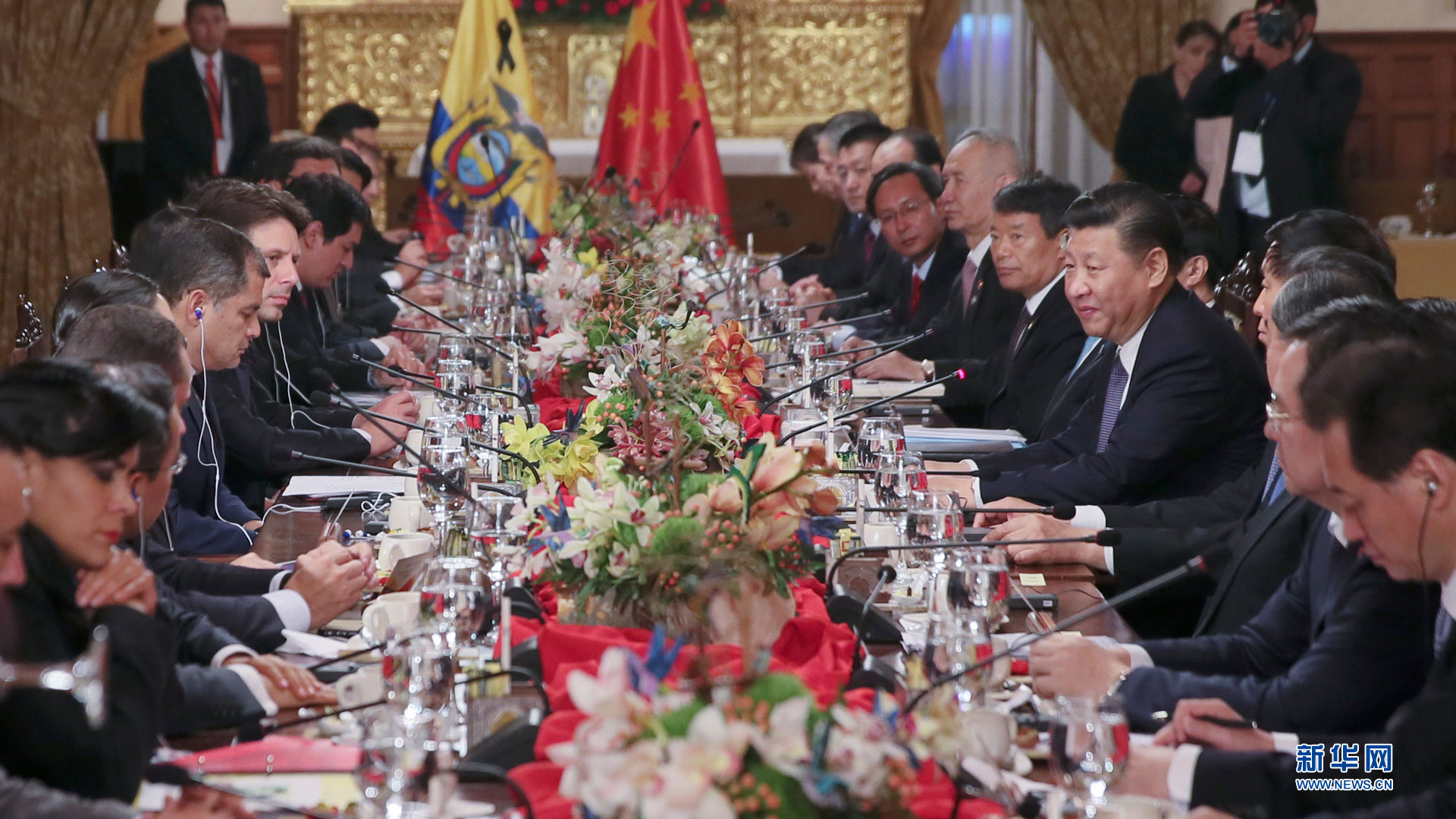 當(dāng)?shù)貢r(shí)間11月17日,國(guó)家主席習(xí)近平在基多同厄瓜多爾總統(tǒng)科雷亞舉行會(huì)談。 新華社記者 蘭紅光 攝2016-11-18