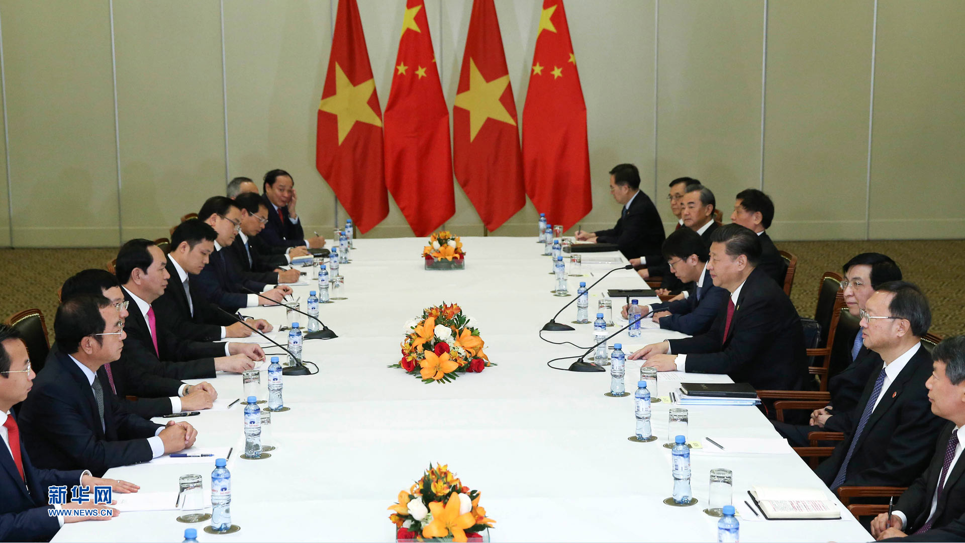 11月19日,國(guó)家主席習(xí)近平在利馬會(huì)見(jiàn)越南國(guó)家主席陳大光。新華社記者 龐興雷 攝2016-11-20