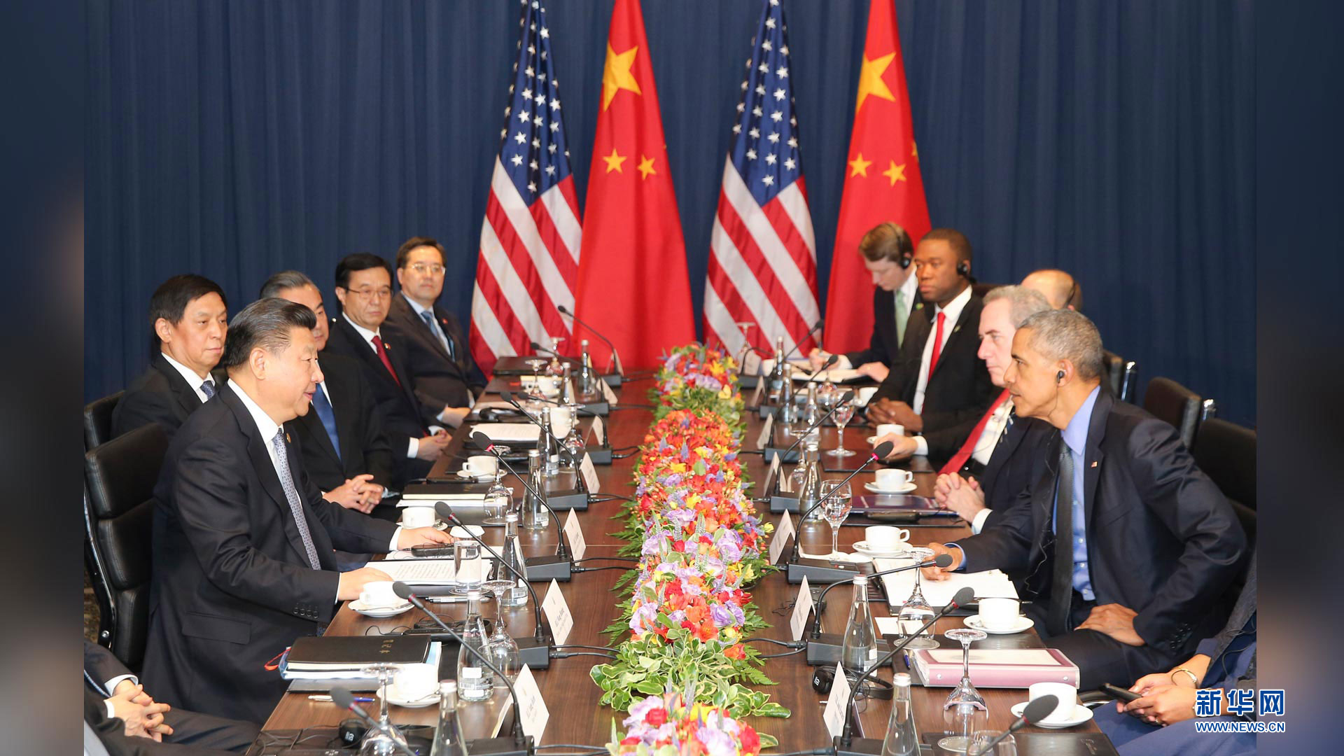 11月19日,國(guó)家主席習(xí)近平在利馬會(huì)見(jiàn)美國(guó)總統(tǒng)奧巴馬。 新華社記者丁林 攝2016-11-20