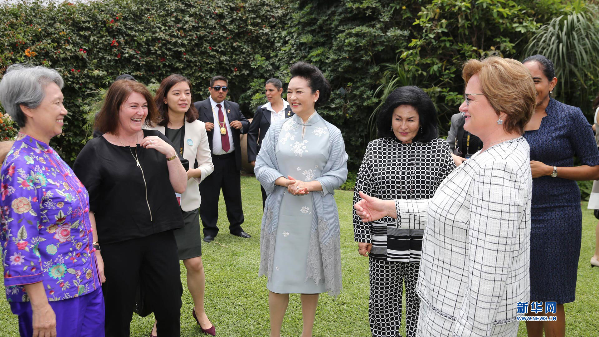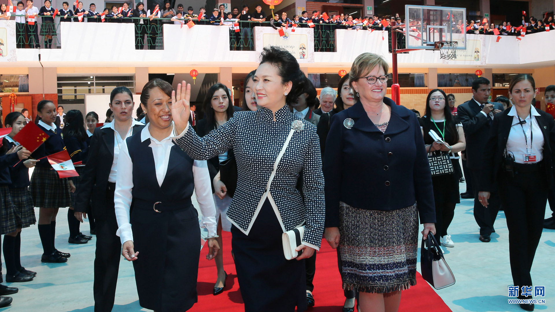 11月21日,國(guó)家主席習(xí)近平夫人彭麗媛在利馬參觀若望二十三世秘中學(xué)校。 新華社記者丁林?jǐn)z2016-11-22