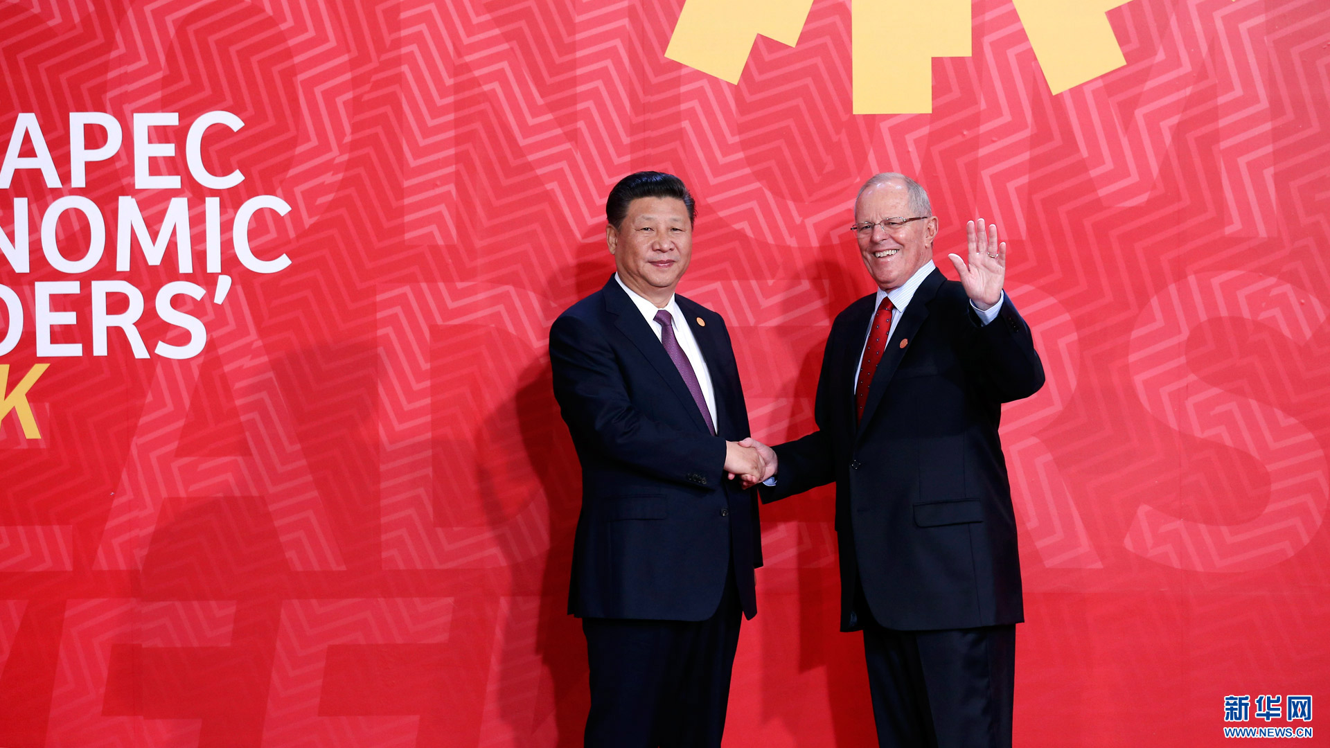 11月20日,亞太經(jīng)合組織第二十四次領(lǐng)導(dǎo)人非正式會(huì)議在秘魯利馬舉行。國(guó)家主席習(xí)近平出席并發(fā)表題為《面向未來(lái)開拓進(jìn)取促進(jìn)亞太發(fā)展繁榮》的重要講話。這是會(huì)議開始前,習(xí)近平受到秘魯總統(tǒng)庫(kù)琴斯基的熱情迎接。 新華社記者 龐興雷 攝2016-11-21