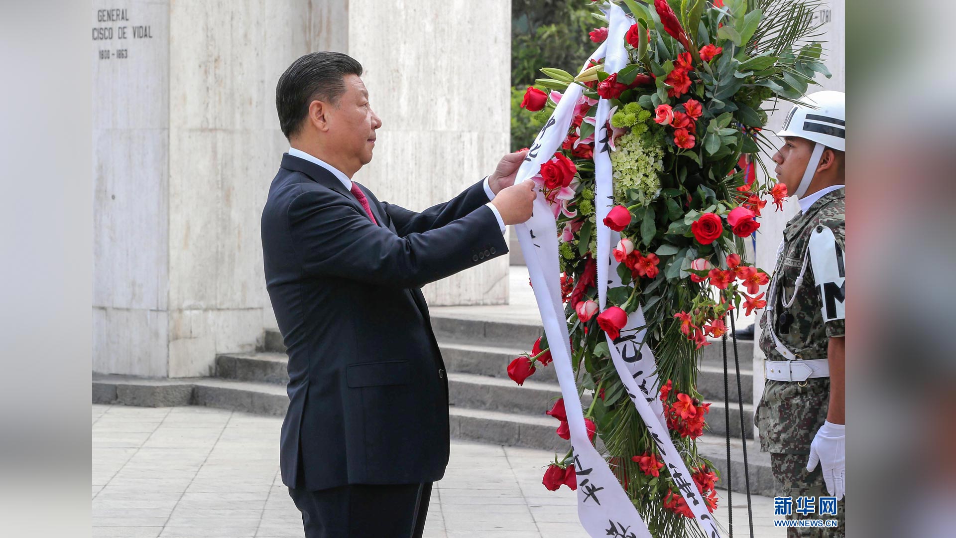 11月22日,國(guó)家主席習(xí)近平在圣地亞哥向智利解放者奧希金斯紀(jì)念碑敬獻(xiàn)花圈。 新華社記者 黃敬文 攝2016-11-23