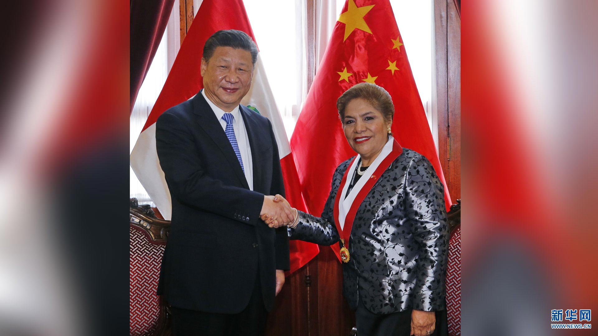 11月21日,國(guó)家主席習(xí)近平在利馬會(huì)見(jiàn)秘魯國(guó)會(huì)主席薩爾加多。新華社記者 鞠鵬 攝2016-11-23