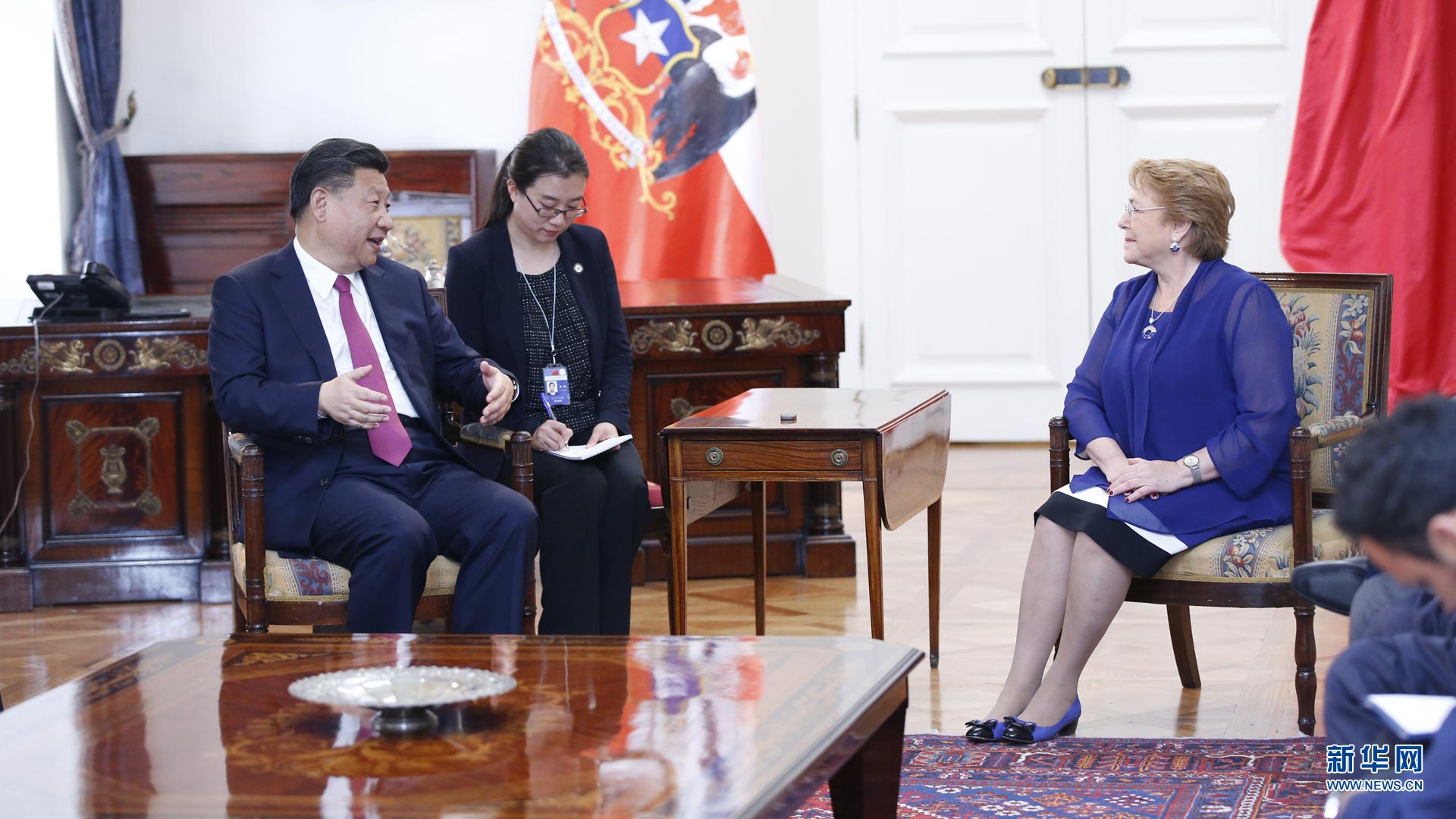 11月22日,國(guó)家主席習(xí)近平在圣地亞哥同智利總統(tǒng)巴切萊特舉行會(huì)談。 新華社記者 鞠鵬 攝2016-11-23