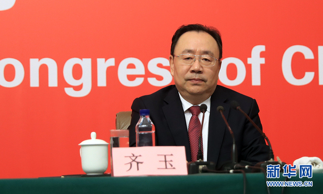 ??? 10月19日,十九大新聞中心舉行記者會,邀請中紀委、中組部負責人介紹黨的建設(shè)和全面從嚴治黨相關(guān)情況。圖為中共中央組織部副部長齊玉介紹相關(guān)情況。新華網(wǎng) 郝廣鵬攝