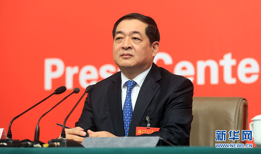 ??? 10月19日,十九大新聞中心舉辦集體采訪,邀請工信和通訊領域代表談走新型工業(yè)化道路。圖為山東省經(jīng)濟和信息化委員會黨組書記、主任錢煥濤。新華網(wǎng) 郝廣鵬攝