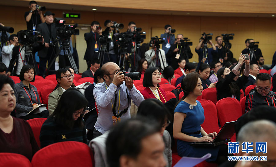 ??? 10月19日,十九大新聞中心舉辦集體采訪,邀請工信和通訊領域代表談走新型工業(yè)化道路。圖為采訪現(xiàn)場。新華網 郝廣鵬攝