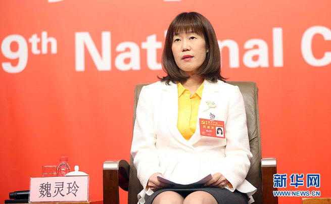 ??? 10月21日,十九大新聞中心舉辦集體采訪活動,主題為“農(nóng)業(yè)科技創(chuàng)新”。圖為中國農(nóng)業(yè)科學(xué)院農(nóng)業(yè)環(huán)境與可持續(xù)研究所研究員、農(nóng)業(yè)部休閑農(nóng)業(yè)重點實驗室主任魏靈玲。新華網(wǎng) 郝廣鵬攝