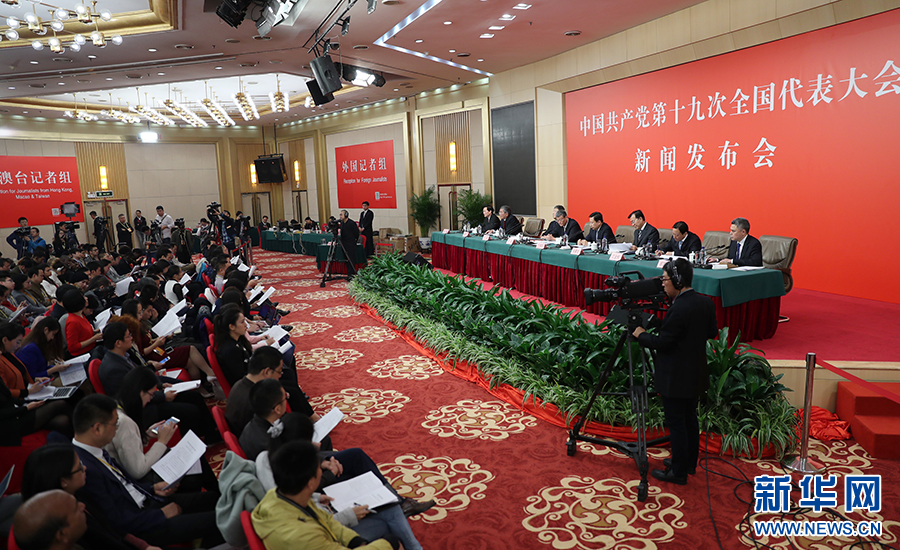 10月26日上午10:00,中國(guó)共產(chǎn)黨第十九次全國(guó)代表大會(huì)新聞發(fā)言人在梅地亞賓館二層新聞發(fā)布廳召開專題新聞發(fā)布會(huì),請(qǐng)有關(guān)方面負(fù)責(zé)人解讀十九大報(bào)告,并回答記者關(guān)心的問(wèn)題。圖為新聞發(fā)布會(huì)現(xiàn)場(chǎng)。新華網(wǎng) 翟子赫 攝