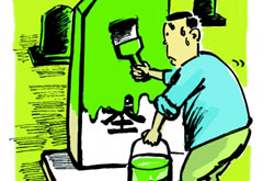 以“刷漆”的方法掩蓋和回避發(fā)展中的問題,無疑是一種掩耳盜鈴的做法。綠漆出現(xiàn)在了錯誤的地方,根本原因是當(dāng)?shù)卣e誤、浮躁的政績觀。而更深層次的問題在于,這種拙劣的手段并未遇到任何問責(zé),甚至得到變相鼓勵。政績考評機(jī)制的不完善,給“刷漆”者留下了投機(jī)的空間。