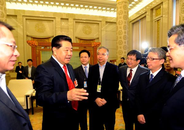 賈慶林看望參加兩會報道的中央新聞單位負(fù)責(zé)人
