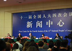 十一屆全國人大四次會議記者會,人民銀行行長周小川、人民銀行副行長胡曉煉、人民銀行副行長劉士余、人民銀行副行長兼國家外匯管理局局長易綱出席記者會接受媒體采訪。