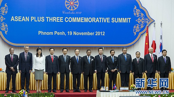 ????新華網(wǎng)金邊11月19日電(記者劉華 馮堅(jiān) 王其冰)東盟與中日韓(10+3)合作15周年紀(jì)念峰會(huì)19日在柬埔寨金邊舉行。中國國務(wù)院總理溫家寶與東盟十國、日本、韓國領(lǐng)導(dǎo)人共同出席。柬埔寨首相洪森主持會(huì)議。