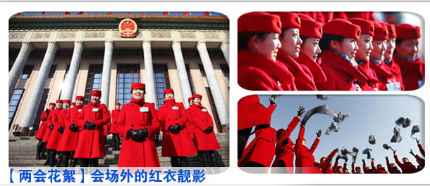 [兩會花絮]會場外的紅衣靚影