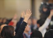 會(huì)議現(xiàn)場記者積極舉手提問