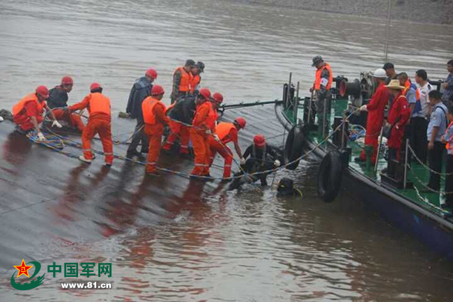 海軍工程大學(xué)潛水分隊(duì)接到救援命令后火速出發(fā),奔赴事發(fā)地點(diǎn)。第一批13名潛水員及一名醫(yī)生,于2日11時(shí)20分到達(dá)救援現(xiàn)場,11時(shí)30分下水展開救援。第二批3名潛水員及一名潛水醫(yī)生,于14時(shí)30分到達(dá)救援現(xiàn)場。