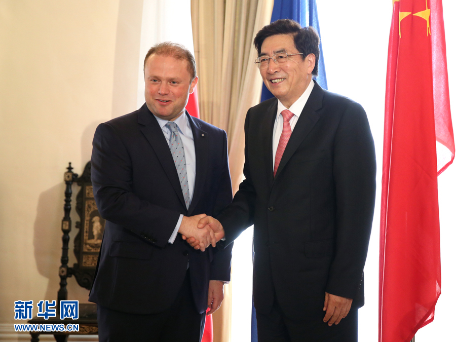 ??? 6月16日,在馬耳他首都瓦萊塔的總理府,郭金龍會見馬耳他總理穆斯卡特(左)。應(yīng)邀對馬耳他進(jìn)行友好訪問的中共中央政治局委員、北京市委書記郭金龍16日在瓦萊塔分別會見馬耳他總統(tǒng)普雷卡和總理、工黨領(lǐng)袖穆斯卡特?! ⌒氯A社記者李佳攝