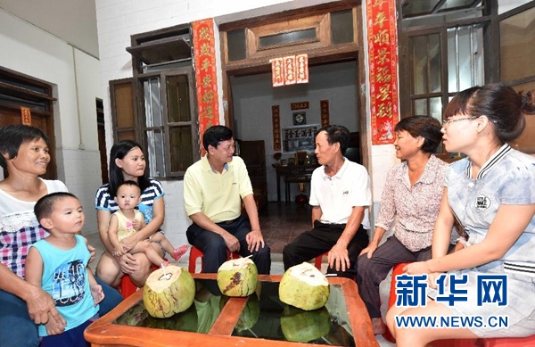 6月26日,樂東黎族自治縣縣委書記林北川(右四)夜訪九所鎮(zhèn)十所村,聽取聯(lián)系點(diǎn)群眾的情況。 新華社記者 趙穎全 攝