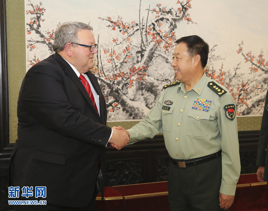 ??? 9月28日,中央軍委副主席范長(zhǎng)龍?jiān)诒本┌艘淮髽菚?huì)見新西蘭國(guó)防部長(zhǎng)格里·布朗利。 新華社記者丁林?jǐn)z
