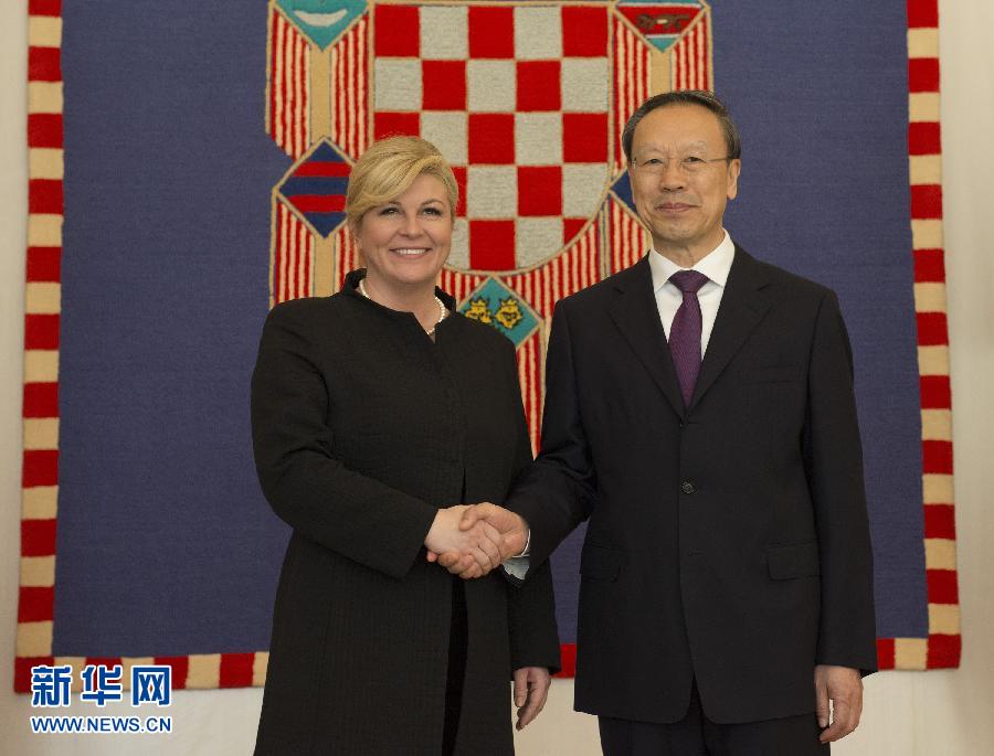 ??? 11月13日,在位于克羅地亞薩格勒布的總統(tǒng)府,克羅地亞總統(tǒng)基塔羅維奇(左)和中共中央書記處書記、全國政協(xié)副主席杜青林握手。正在克羅地亞訪問的中共中央書記處書記、全國政協(xié)副主席杜青林13日在薩格勒布分別會見了克羅地亞總統(tǒng)基塔羅維奇和議長萊科。新華社發(fā)(米紹·利沙寧攝)