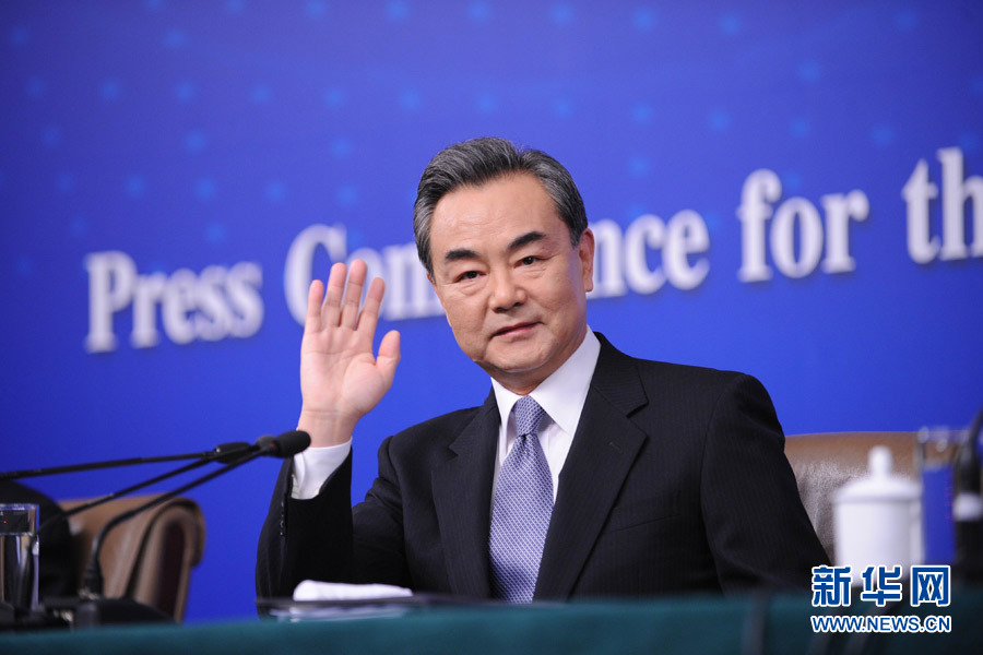 ?十二屆全國人大三次會議新聞中心于3月8日(星期日)10時在梅地亞中心多功能廳舉行記者會,邀請外交部部長王毅就中國的外交政策和對外關(guān)系相關(guān)問題回答中外記者提問。圖為外交部部長王毅向記者揮手致意。新華網(wǎng)/中國政府網(wǎng) 翟子赫 攝
