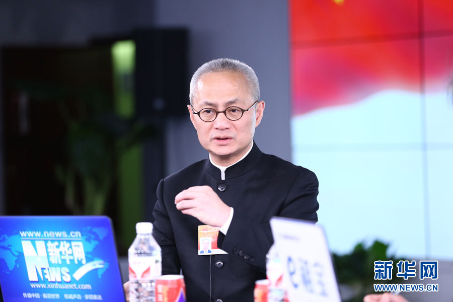 ??? 2015年3月14日,全國人大代表、鳳凰古城文化旅游投資股份有限公司董事長葉文智做客新華會客廳。圖為葉文智解答主持人問題。新華網(wǎng) 李江 攝