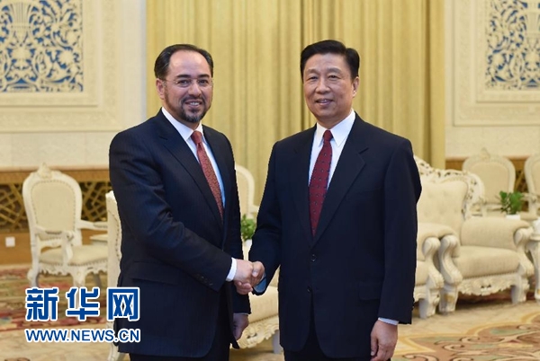 1月26日,國(guó)家副主席李源潮在北京會(huì)見(jiàn)阿富汗外長(zhǎng)拉巴尼。新華社記者 張鐸 攝