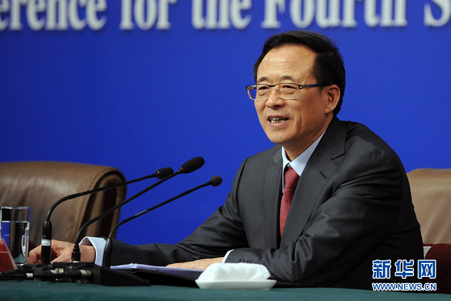3月12日,十二屆全國人大四次會議在梅地亞中心多功能廳舉行記者會,邀請中國銀行業(yè)監(jiān)督管理委員會主席尚福林、中國證券監(jiān)督管理委員會主席劉士余、中國保險監(jiān)督管理委員會主席項俊波回答中外記者的提問。圖為中國證券監(jiān)督管理委員會主席劉士余答記者問。新華網(wǎng)/中國政府網(wǎng) 陳杰 攝