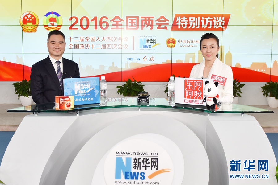 3月12日,全國(guó)人大代表,運(yùn)城市市長(zhǎng)王清憲做客新華網(wǎng)2016全國(guó)兩會(huì)特別訪談,與新華網(wǎng)網(wǎng)友在線交流。圖為王清憲在訪談現(xiàn)場(chǎng)。新華網(wǎng) 付宇鵬 攝