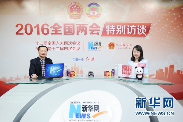 圖為全國(guó)人大代表、湖南省益陽(yáng)市委書(shū)記胡忠雄做客2016新華網(wǎng)兩會(huì)訪談直播間。新華網(wǎng) 盧志佳 攝