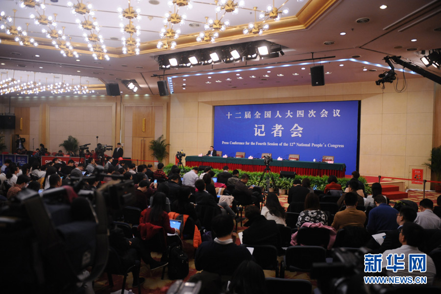 十二屆全國人大四次會議新聞中心于3月14日(星期一)10時在梅地亞中心多功能廳舉行記者會,邀請交通運輸部部長楊傳堂、交通運輸部運輸服務司司長劉小明、北京交通發(fā)展研究中心主任郭繼孚就“深化出租汽車改革與發(fā)展”的相關問題回答中外記者的提問。圖為開始前的記者會現(xiàn)場。新華網(wǎng)/中國政府網(wǎng) 陳杰 攝