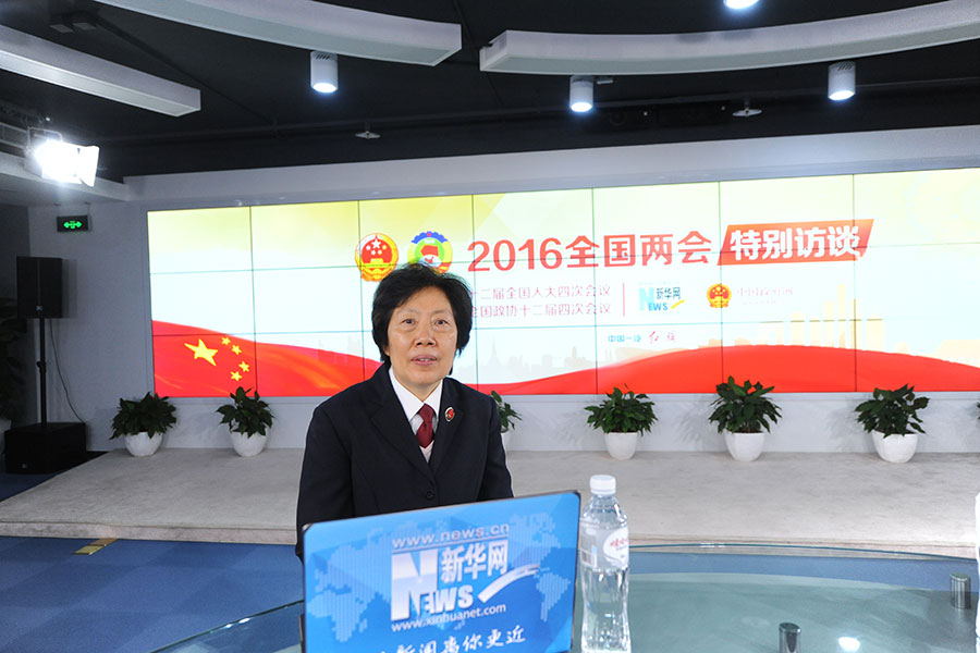 2016年3月14日,最高人民檢察院黨組副書記、常務(wù)副檢察長胡澤君做客新華網(wǎng)兩會訪談直播間。圖為胡澤君在訪談現(xiàn)場。新華網(wǎng) 賈振 攝